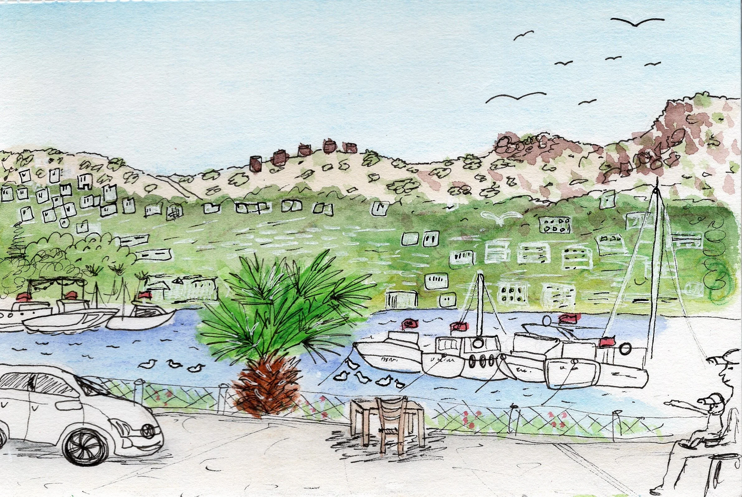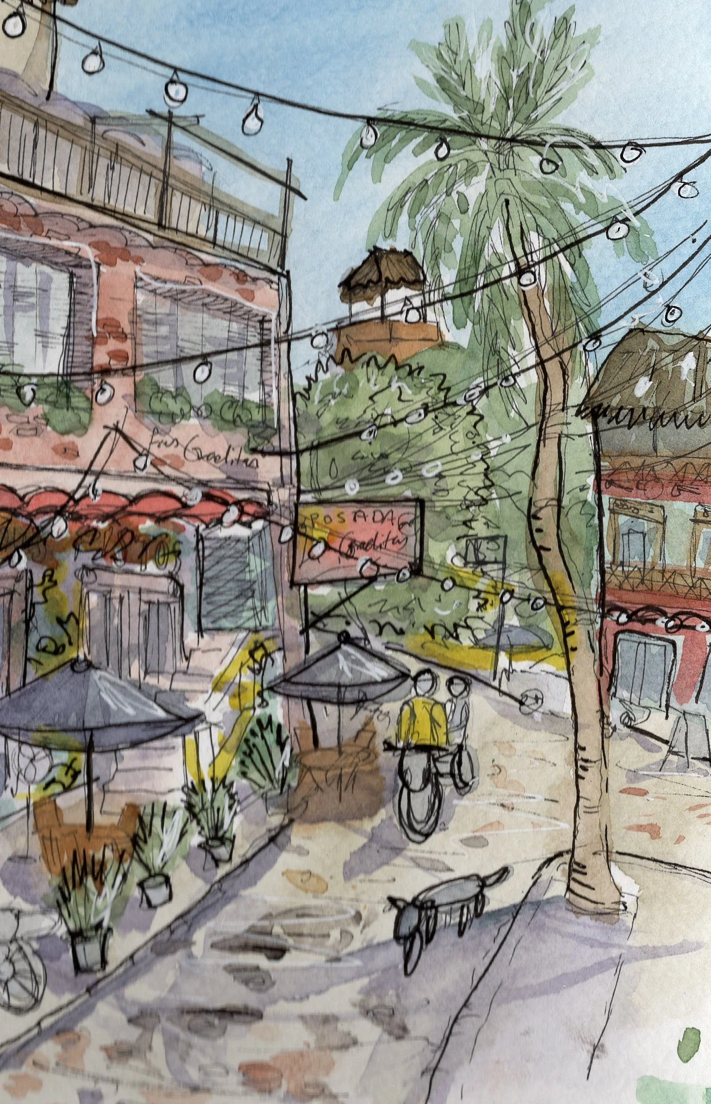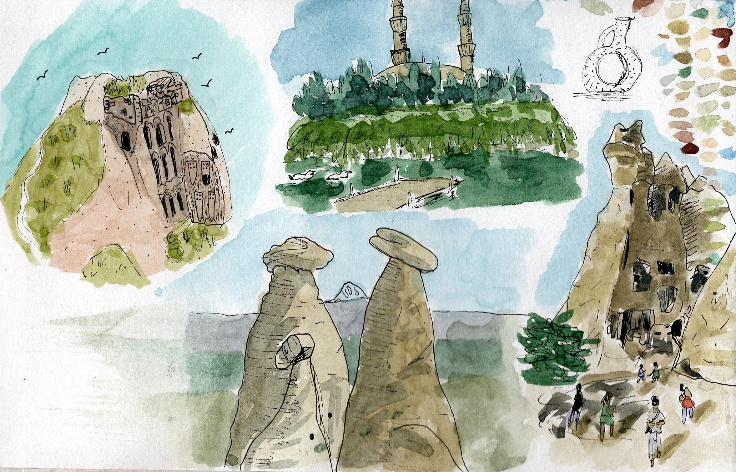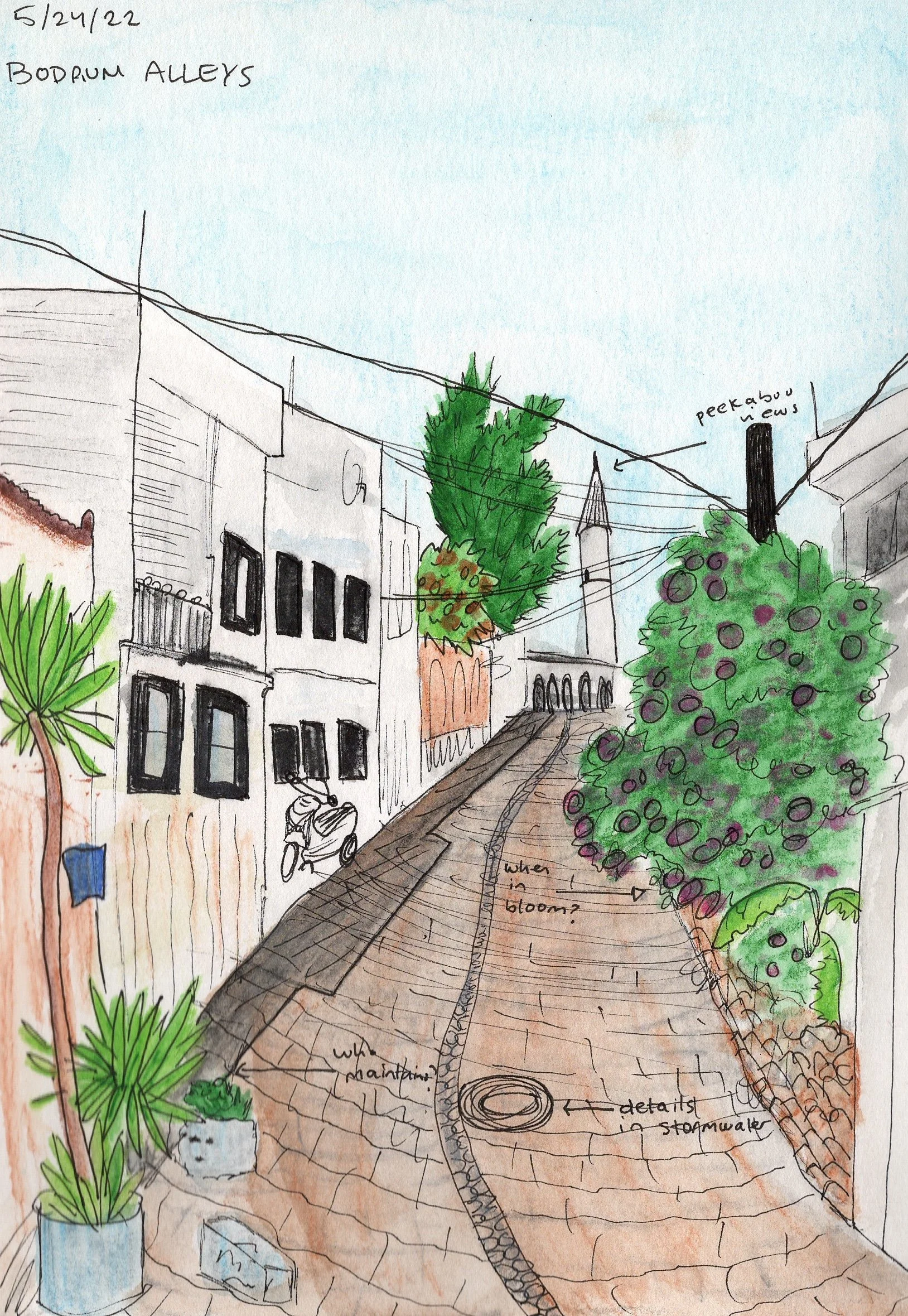 In the Summer of 2022, I was in a graduate school summer studio in Bodrum, Turkey, when I picked up a watercolor sketchbook and paints. I dedicated myself to learning to capture the world around me through paint and ink.