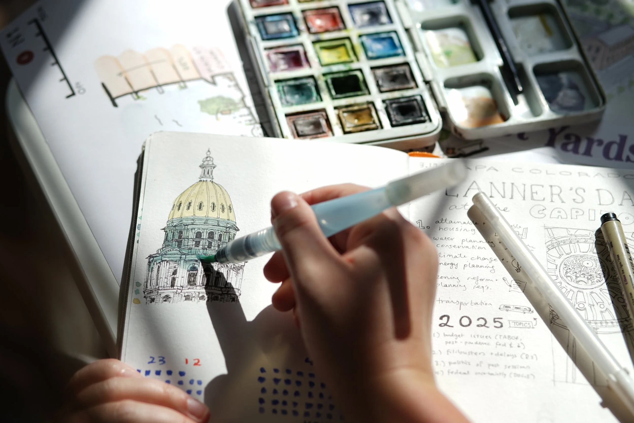 Since then, I keep my sketchbook with me every day. The practice has strengthened my creative instincts, encouraged me to be present, honed my understanding of color, composition, and perspective, and connected me to others.